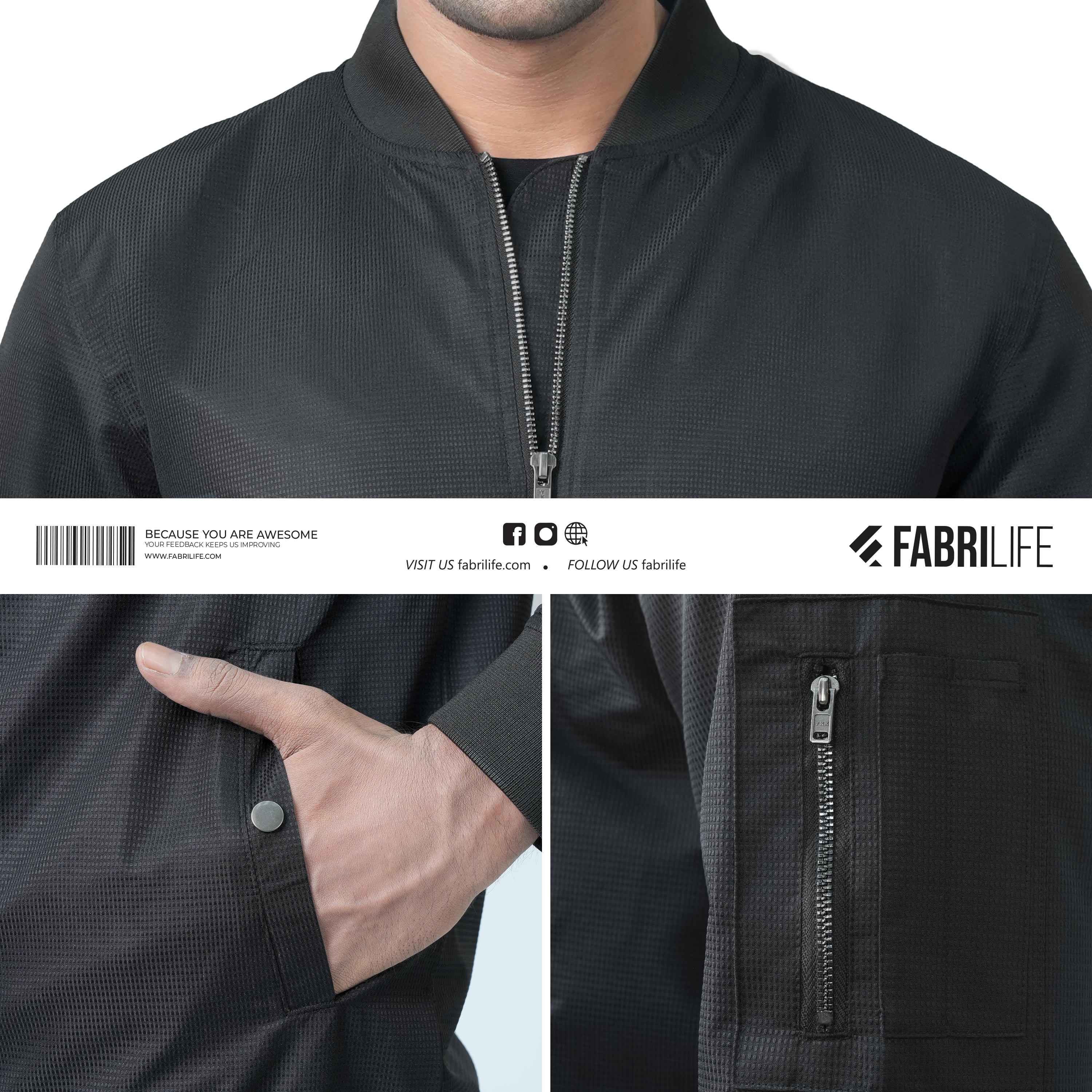 Designed with a minimal, modern bomber-style silhouette.